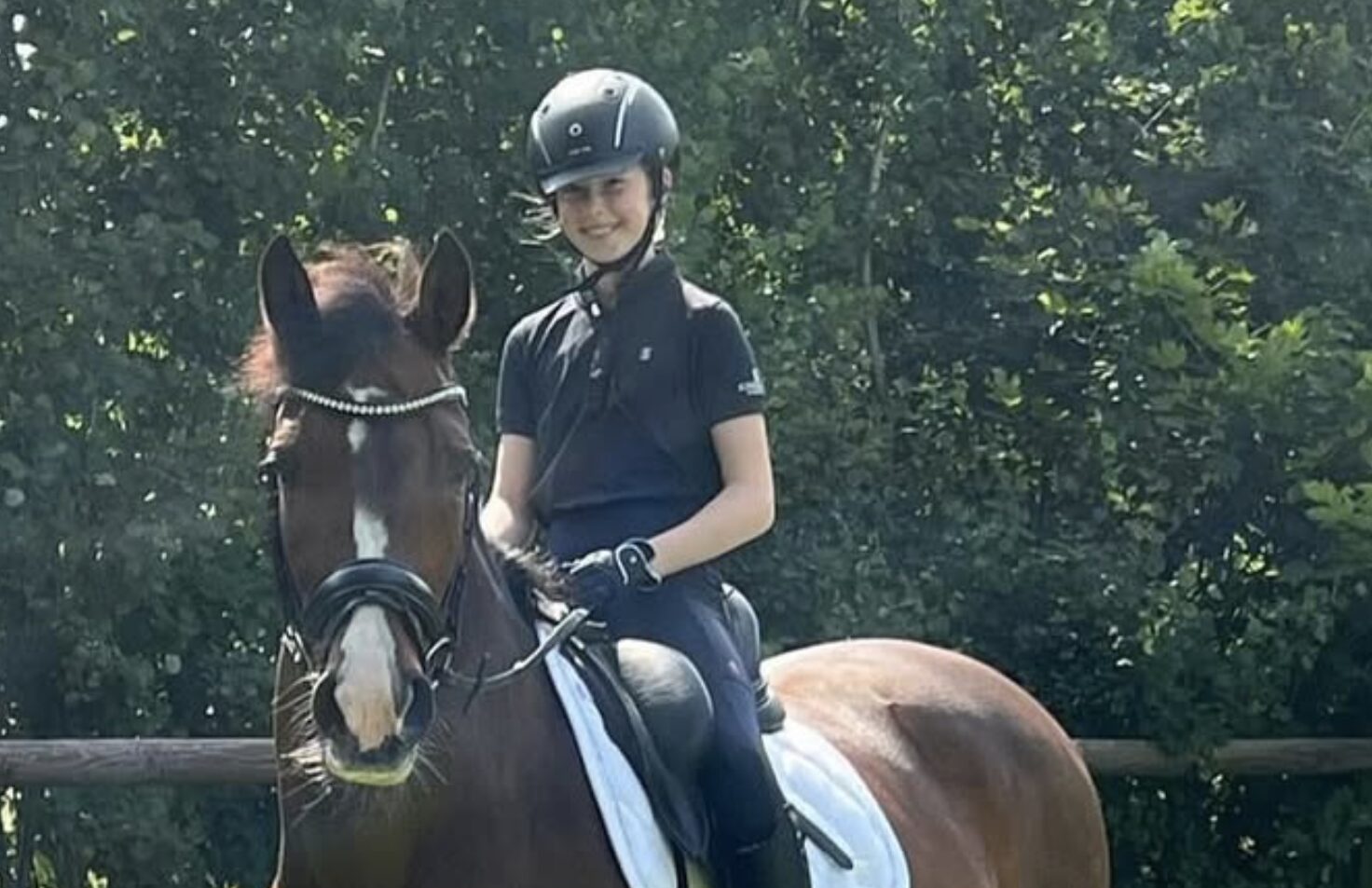 Mein Name ist Florine Tesdorpf. Ich bin Jahrgang 2012 und reite für den Reit- und Fahrverein Hoisdorf e.V.. Ich bin hauptsächlich in der Dressur unterwegs. Pferde begeistern mich schon, seit ich denken kann. Mein Pony Proud Gilian kam im November 2023 zu uns. Sie ist eine 19-jährige deutsche Reitponystute. Unsere bisher schönsten Erfolge in 2024 waren der 2. Platz in der DRA beim Pony-Landesturnier in Bad Segeberg und zwei Siege jeweils mit 8,6 in Schiffbek. Bei meinem ersten Turnier in 2025 wurde ich 2. in einer A**-Dressur in Sieversen. Ich wünsche mir für die Zukunft, dass wir gesund bleiben und weiter erfolgreich auf Turnieren starten können. Wir freuen uns sehr, dass wir im Perspektivkader dabei sein dürfen.